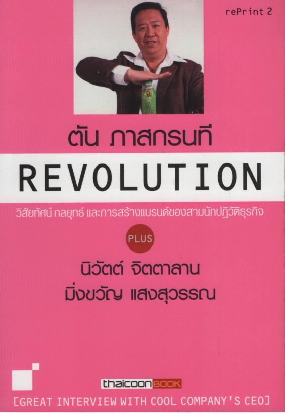 ชื่อหนังสือ REVOLUTION :  วิสัยทัศน์กลยุทธ์ และการสร้างแบรนด์ของสามนักปฏิวัติธุรกิจ ตัน ภาสกรนที, นิวัตต์ จิตตาลาน และ มิ่งขวัญ แสงสุวรรณ